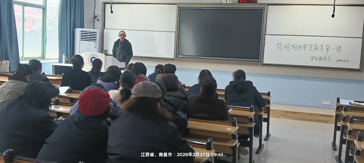 安全是校园服务的底线,员工履职能力是安全保障的基石。前湖物业中心将员工安全能力建设作为开学前重点工作,于2月27日组织开展员工安全培训,为员工送上开学前安全“第一课”,培训内容覆盖岗位职责、服务提升、消防安全、应急处置等核心板块,全方位夯实员工业务与安全基础。